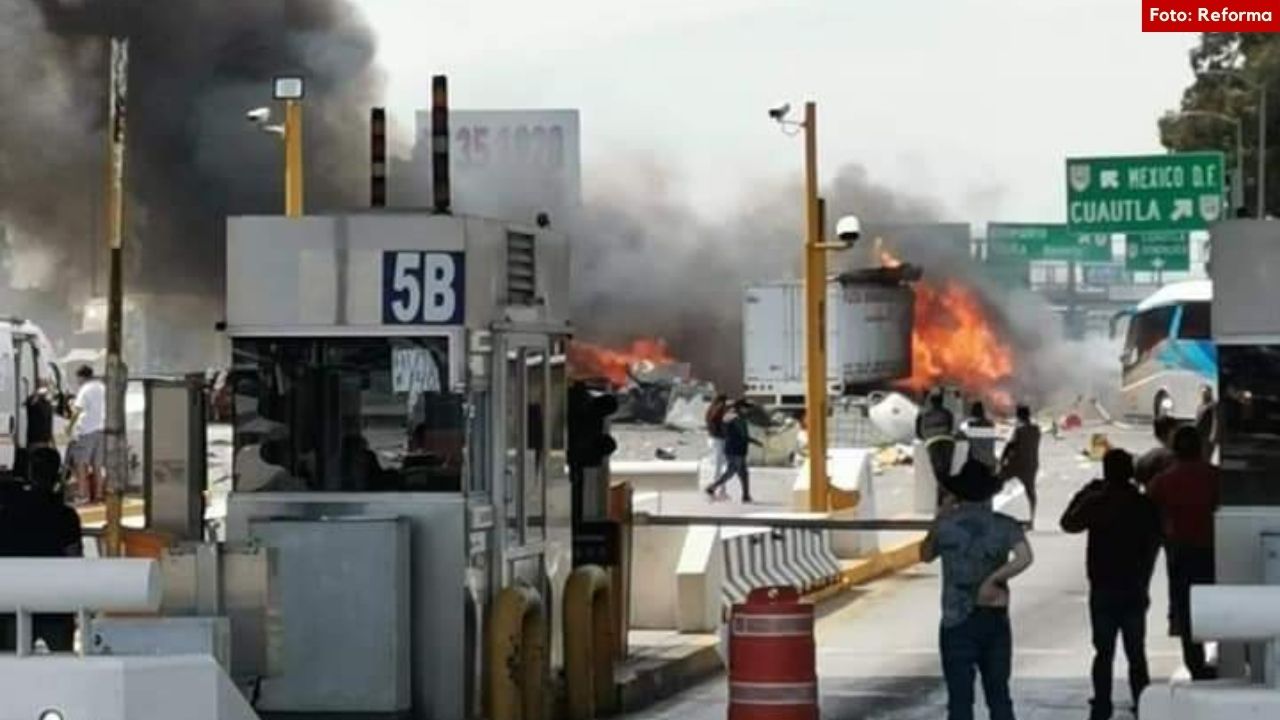 El accidente ocurrió al mediodía cuando un camión de carga se quedó sin frenos y chocó contra varios vehículos cerca de una caseta de peaje de la autopista, según las autoridades de Protección Civil del Estado de México. Tras el choque, algunos vehículos comenzaron a incendiarse.
