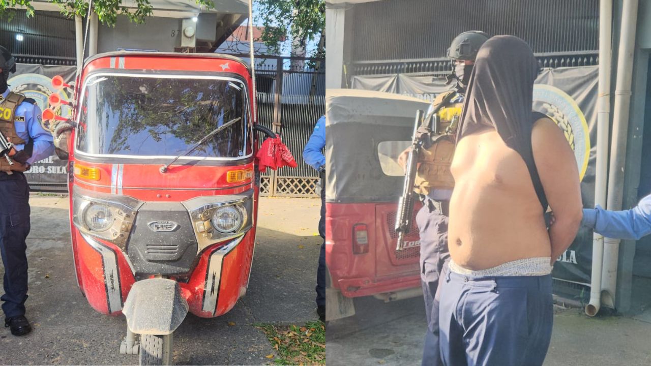 La Dirección Policial Anti Maras y Pandillas Contra el Crimen Organizado (Dipampco) informó en las últimas horas de la captura de alias "Bellaco" y "Baby Sugar", presuntos extorsionadores de la Pandilla 18 que usaban una mototaxi como herramienta para cometer el ilícito en La Lima, Cortés.
