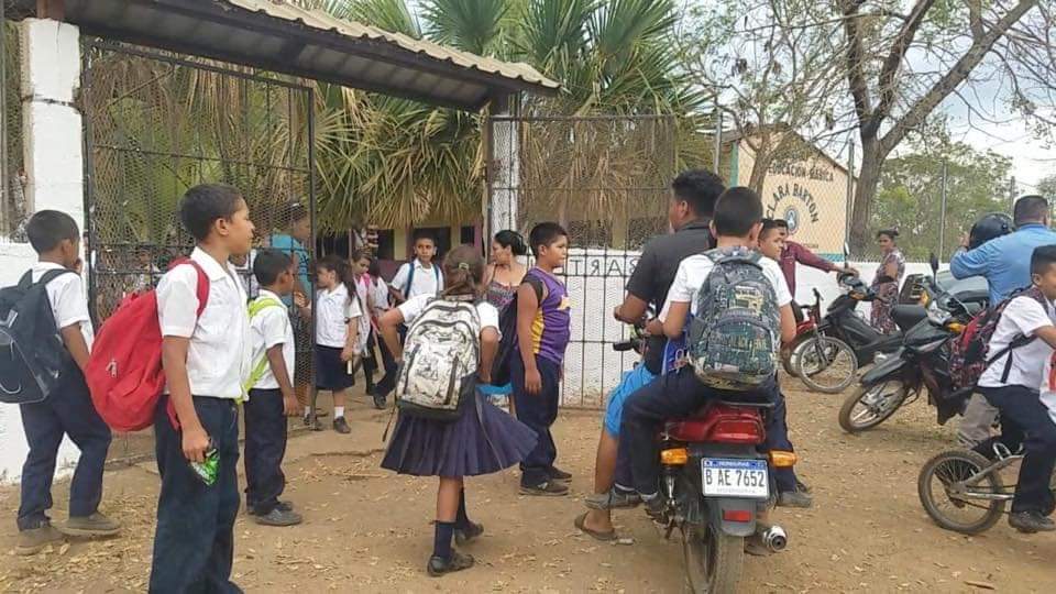 Con machete en mano, olanchana recoge a su niño en escuela en Catacamas