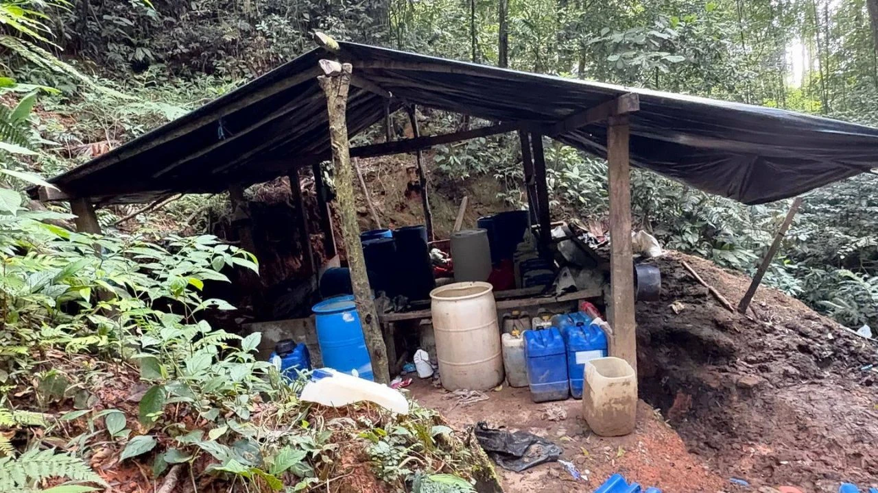Además de la plantación de coca, durante la operación táctica en Colón se identificó una estructura artesanal elaborada a base de madera y nylon negro. Según las autoridades, se usaba como laboratorio para la extracción de alcaloides.