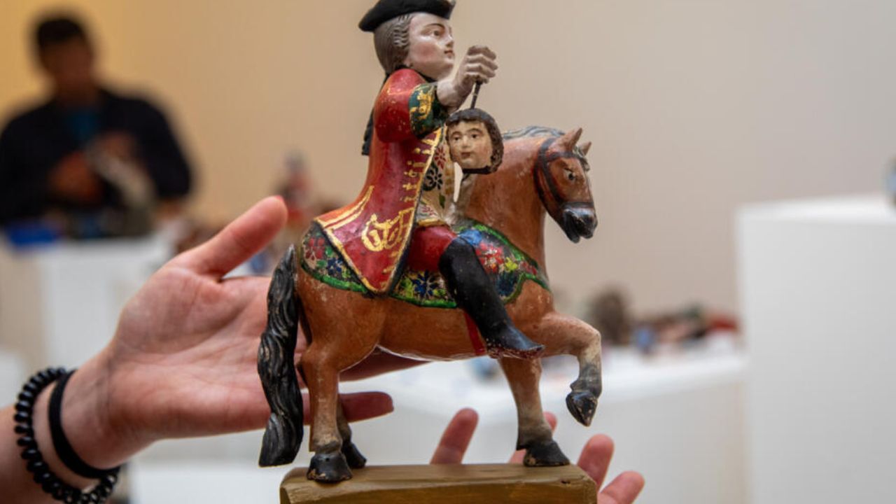 Entre las piezas aparecen, por ejemplo, varios personajes del pueblo indígena yumbo con sus rostros pintados y una suerte de tocados de plumas en sus cabezas.