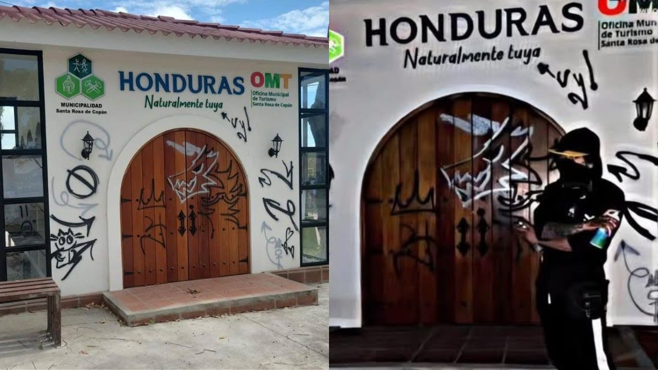 Un joven en Santa Rosa de Copán, Copán, se dedicó a dibujar grafitis y vandalizar espacios importantes del centro histórico, para luego exhibirlos por redes sociales, pero terminó en manos de las autoridades de justicia por una denuncia de su propio padre.
