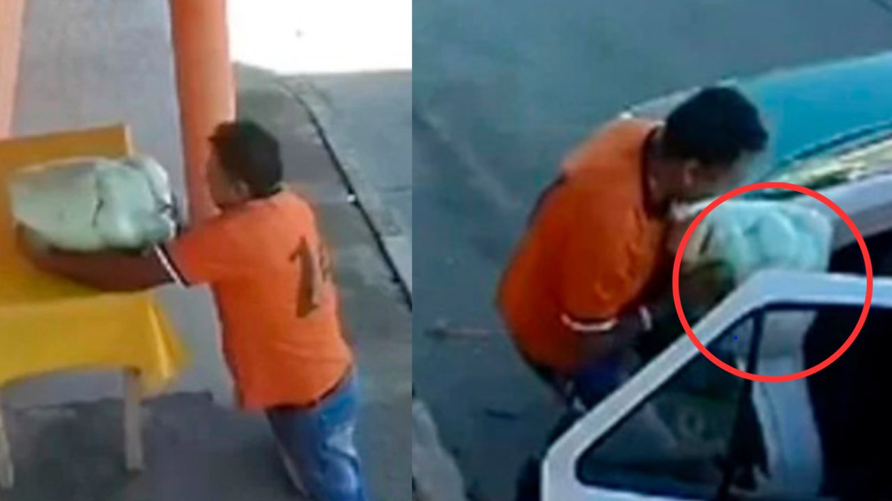 Por medio de la red social X se dio a conocer el clip en el que el taxista, cuya identidad se desconoce, robó varias bolsas de kilos de masa que se encontraba sobre una mesa que estaba en la acera de la calle.