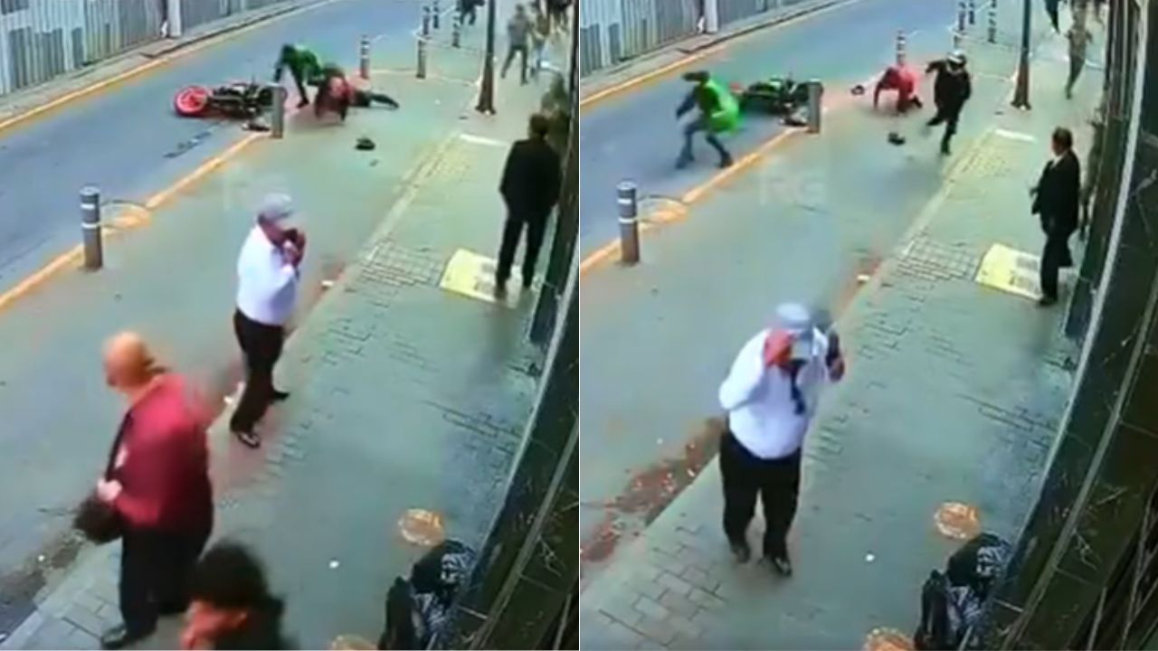 Poco después, el agente se acerca para esposarlo, a la vez que otro policía llegó hasta donde estaba tirado el otro presunto asaltante para arrestarlo.