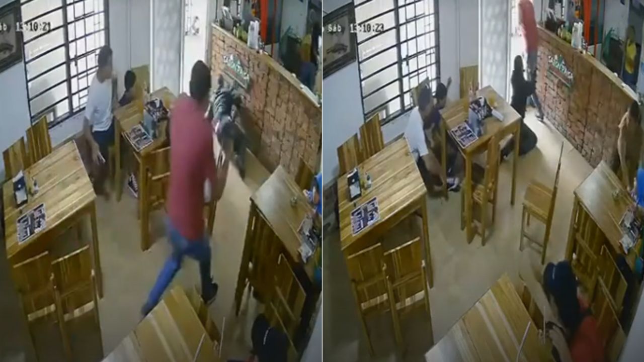 La cámara de seguridad de un restaurante captó el momento en que una mujer policía que se encontraba fuera de servicio neutralizó a tiros a un presunto ladrón que intentaba asaltar a todos los presentes.