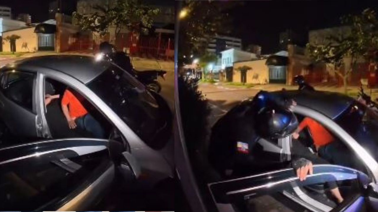 El video muestra cuando los oficiales llegan en motocicleta y preguntan: “¿Qué pasó aquí?” Luego, le indican al hombre: “Póngase bien ese pantalón, baje del vehículo… déjela que se ponga el pantalón”.